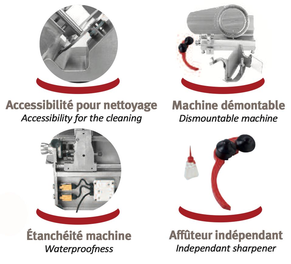 Le trancheur à jambon « MAJOR SLICE » est unique sur le marché. Robuste et précis, il permet une coupe parfaite grâce à sa fiabilité de fonctionnement. Sa conception entièrement INOX et son design aéré lui garantissent une facilité de nettoyage et une hygiène parfaite.